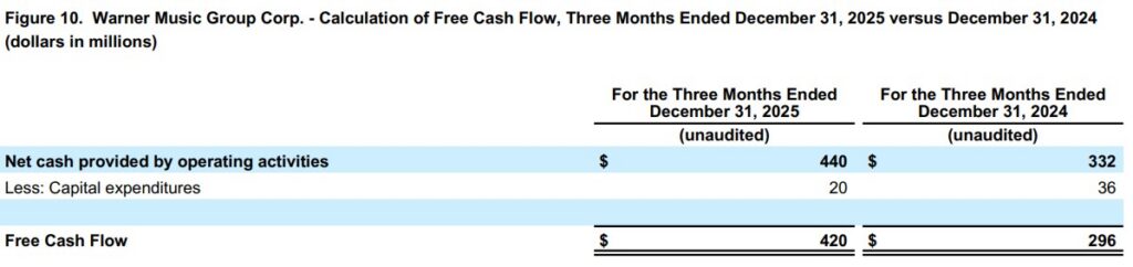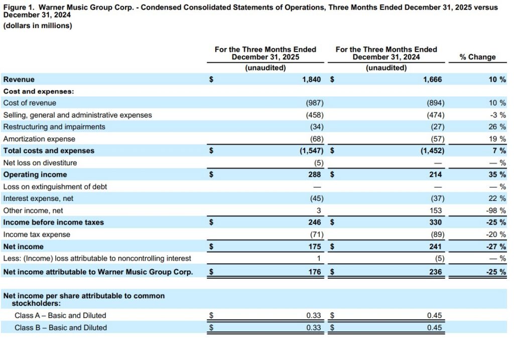 Warner Music Group Corp. today announced its first-quarter financial results for the period ended December 31, 2025.
