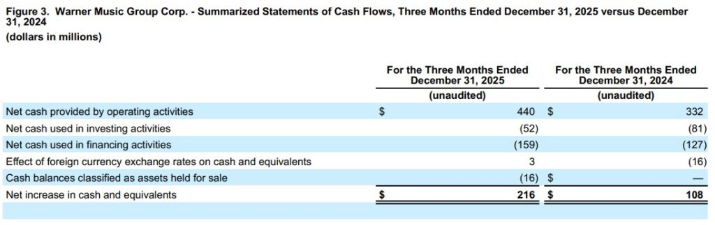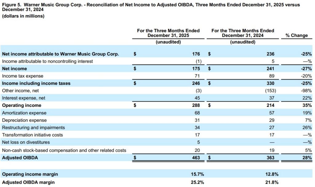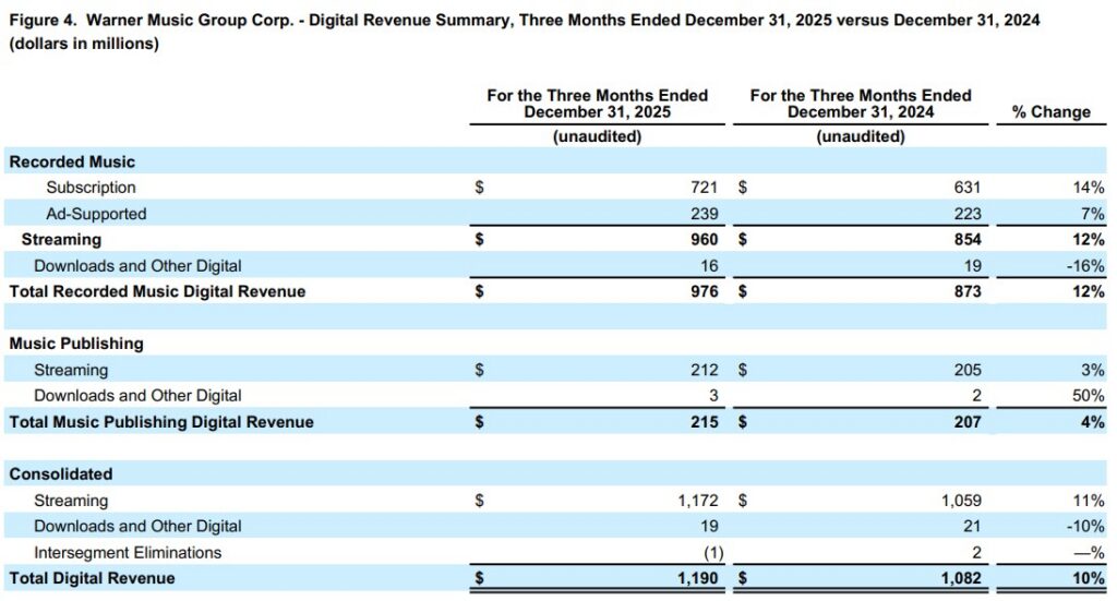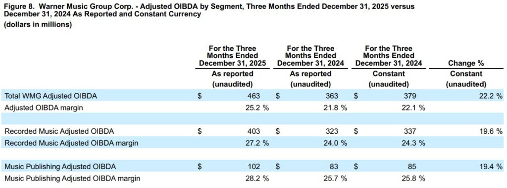 “We are delivering on our promises by combining significant transformation with accelerated growth and profitability, marking our third consecutive quarter of broad-based success,” said Armin Zerza, CFO, Warner Music Group. “By fortifying our core through strategic investments and pioneering ethical AI partnerships, we have established a solid foundation to drive sustainable, long-term value for our artists and shareholders alike. This is just the beginning of our momentum, and we are well-positioned to accelerate our growth even further in 2026.”